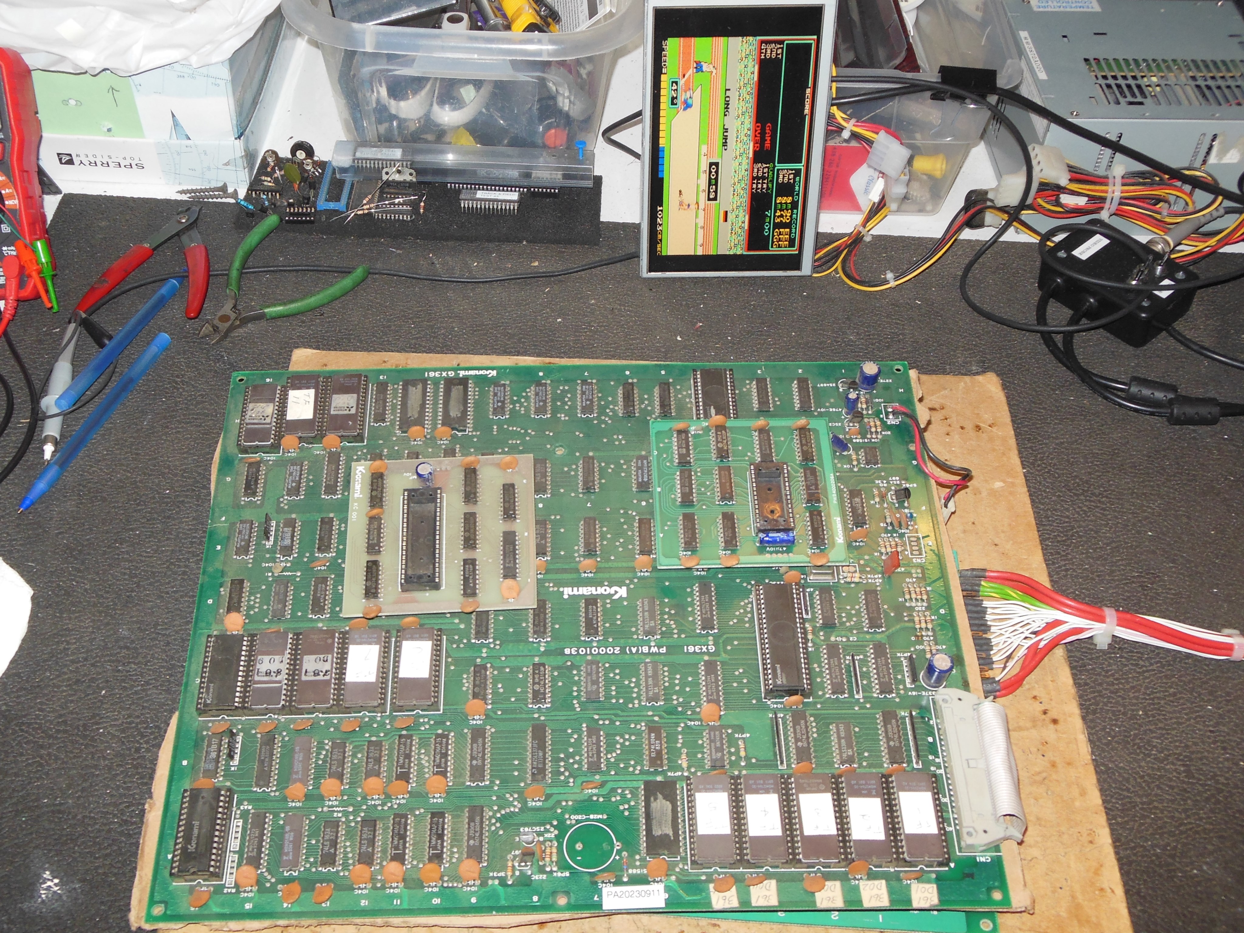 I also had three spare Hyper Olympic/Track & Field game PCBs that I removed all batteries and tested on the bench.