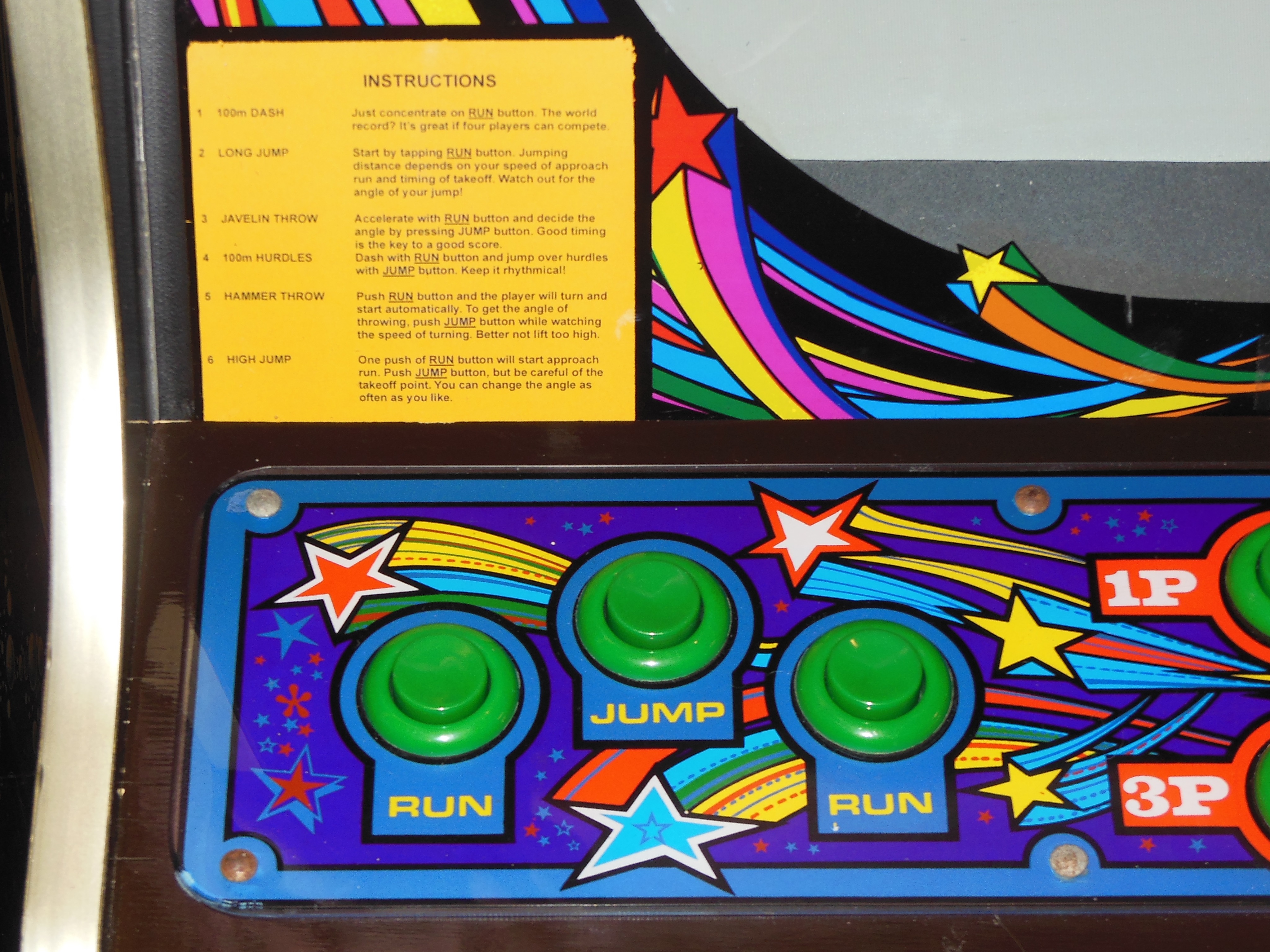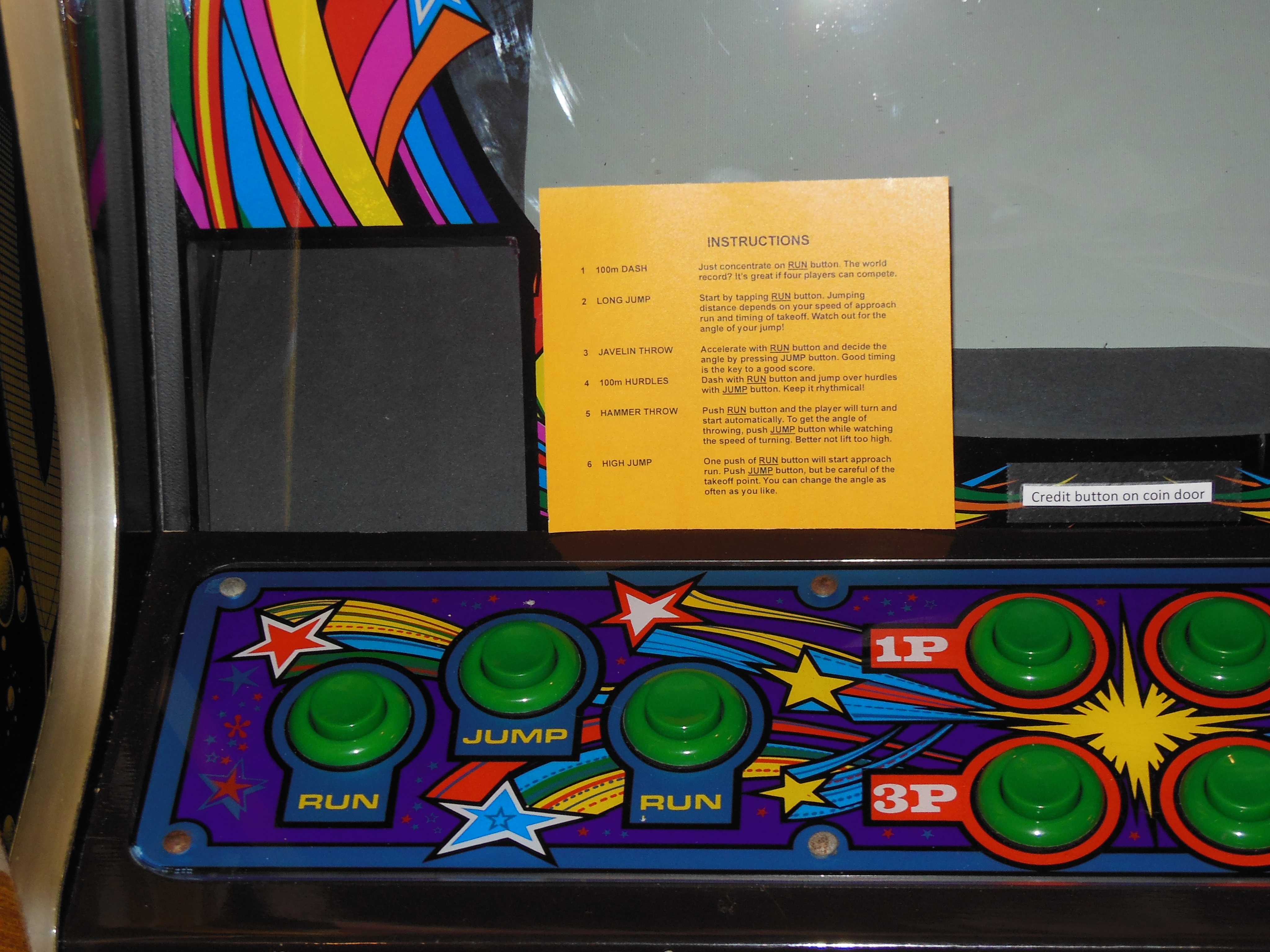 There was no instruction card for the window in the monitor glass and all the available scans I could find online were for Track'n'Field. I had a scan from a Zaccaria monitor cavity instruction card found in the Z040 cabinet style, however.