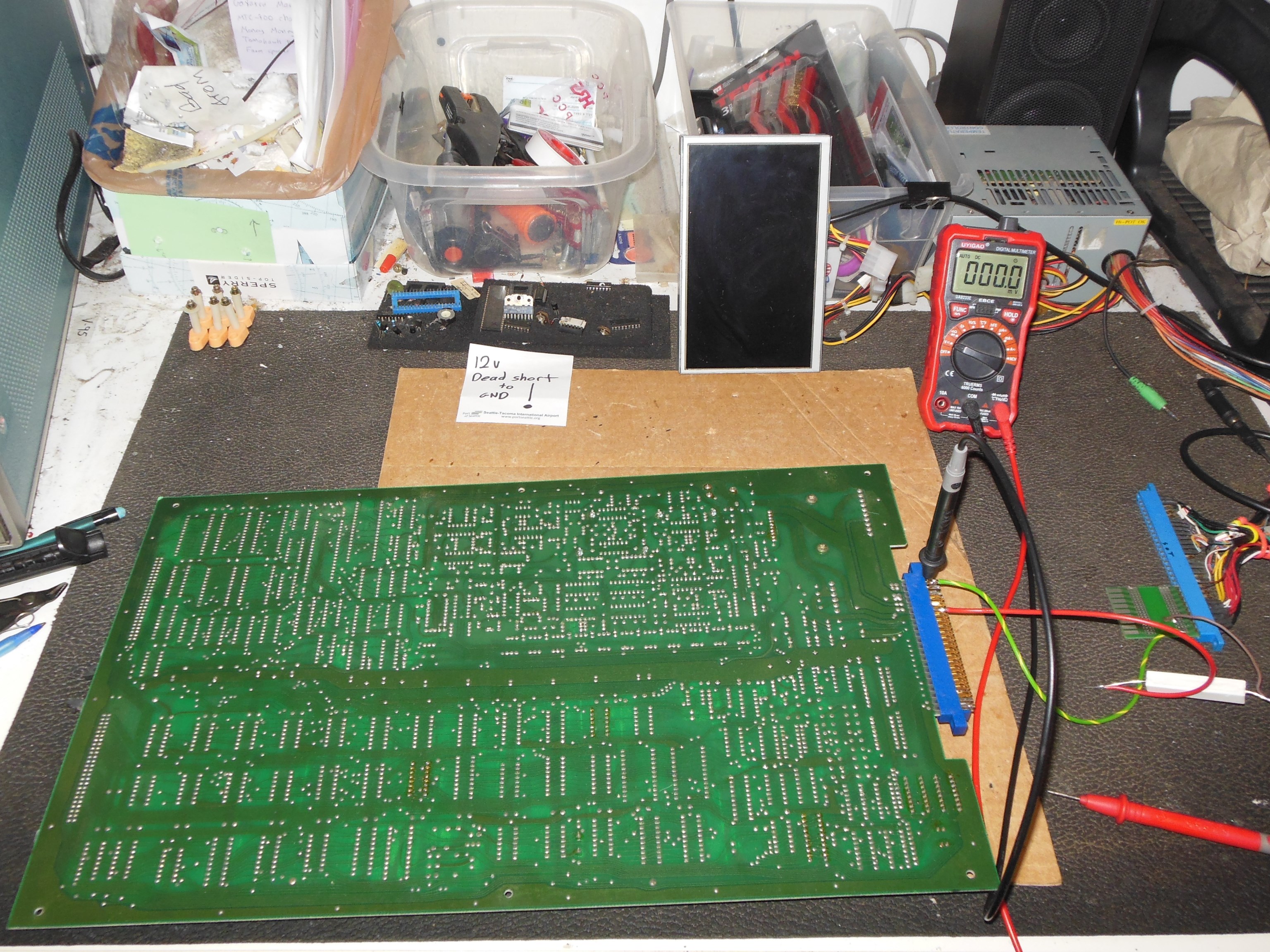 Pre-show testing discovered that this spare game PCB had a +12V short to ground. The +12V