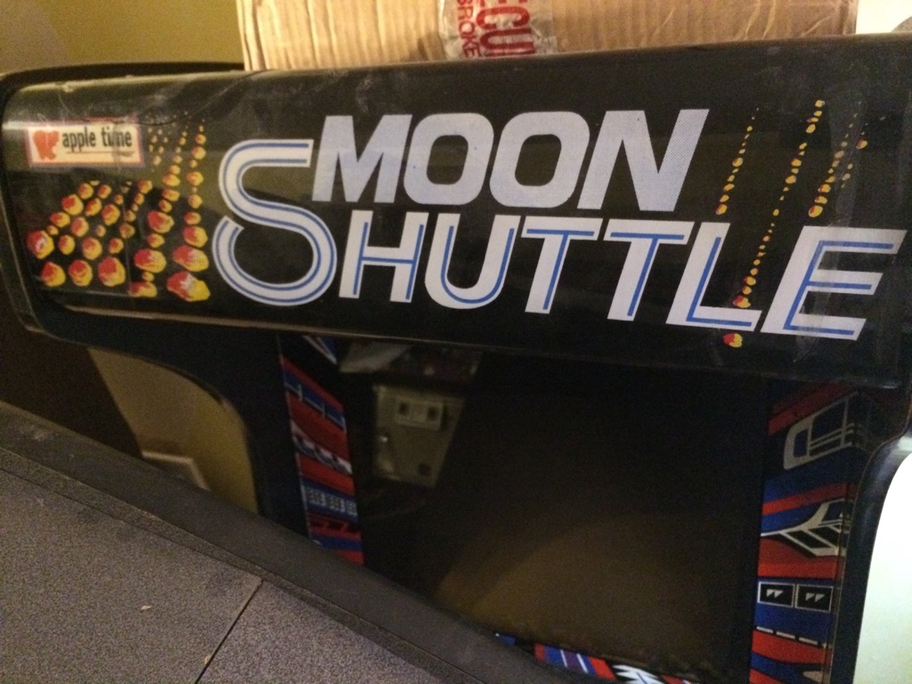 Talk on the Dragons Lair Fans forum about an Apple Time Moon Shuttle upright. Note the Zaccaria style curved marque.